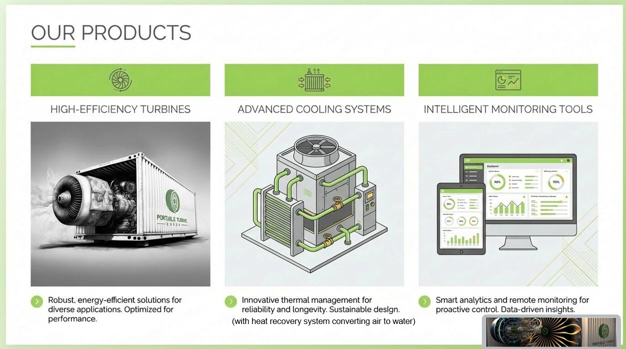 3. Compact and Modular Design Turbofan cores can be repackaged into compact, containerized power units. Multiple units can be installed in parallel to scale output as needed.